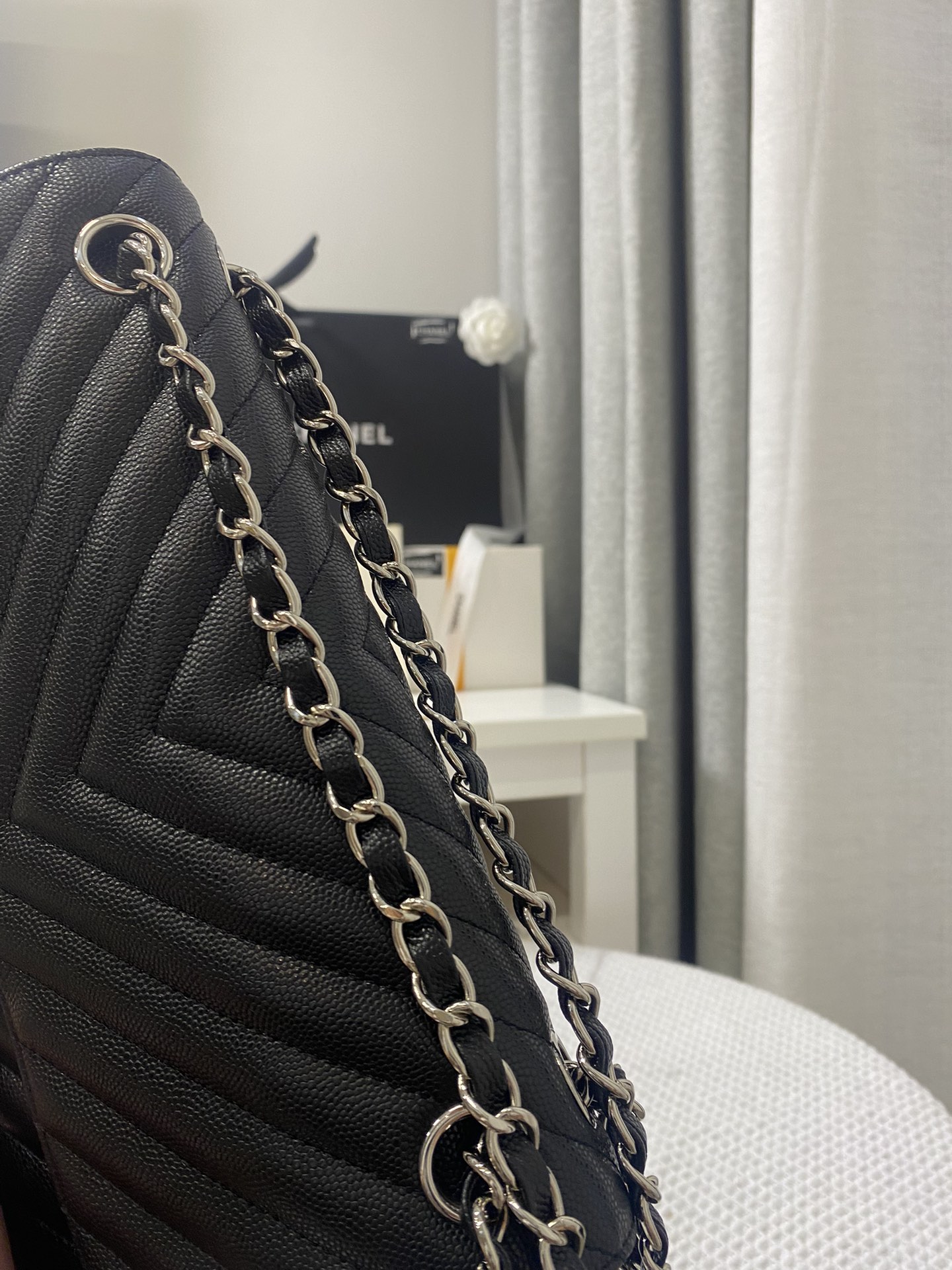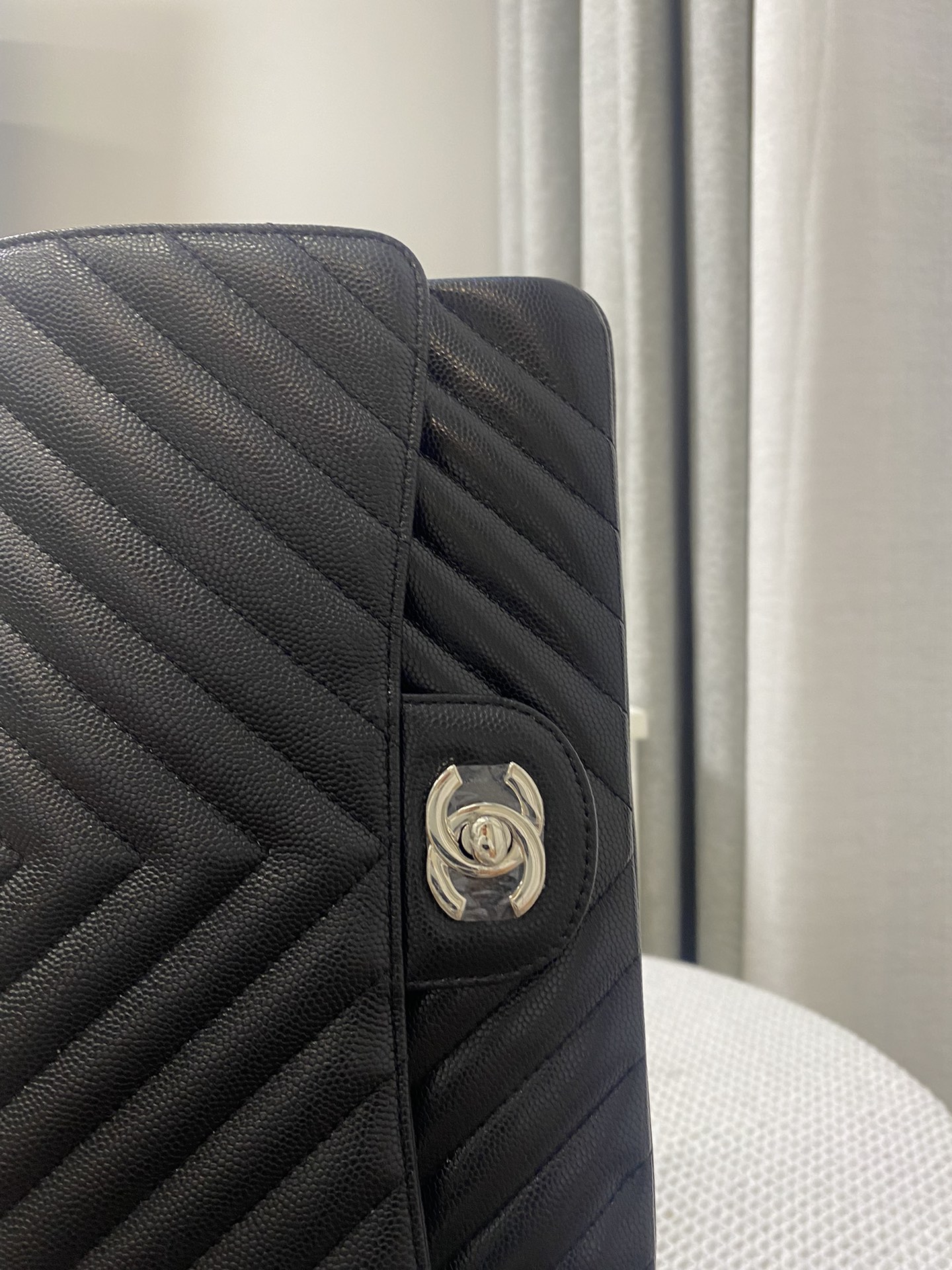 Silver Hardware With Caviar Leather