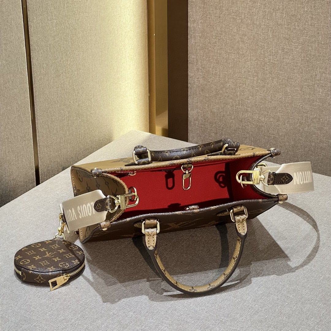 The more stylish commuter king in a size that can be carried on one shoulder, slung across the body, or carried by hand! Onthego has always been a popular bag style, and many ladies felt that the original size was relatively large. Now, a smaller size has been introduced. This year, a trendy wide shoulder strap has been added, along with a coin purse