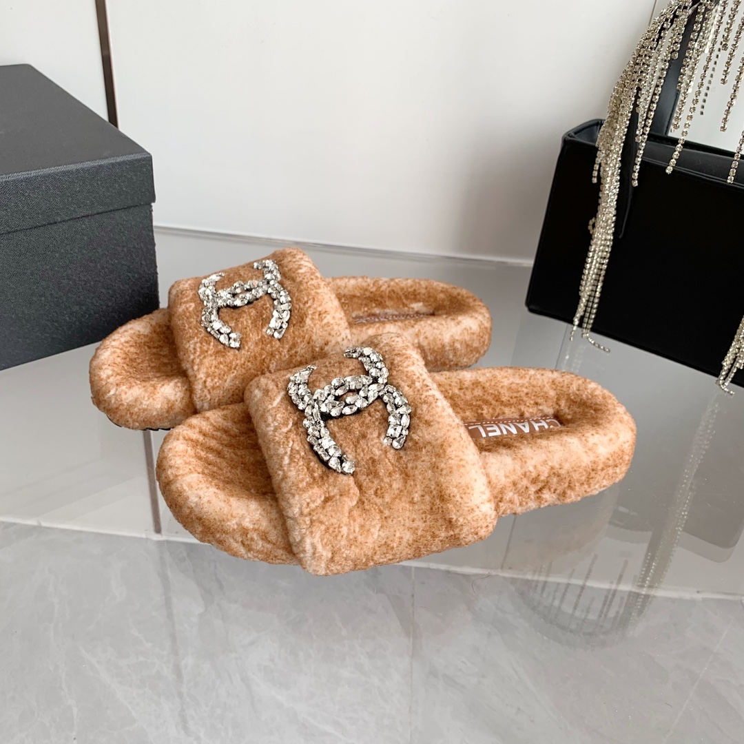 Pure fur one-piece lamb wool made + artificial hand sewn drill. Super warm feeling, the sole is the original mold of non-slip rubber outsole, very easy to wear without slipping, and the sole has a certain thickness, excellent comfort! Upper: Wool (Frosting process)