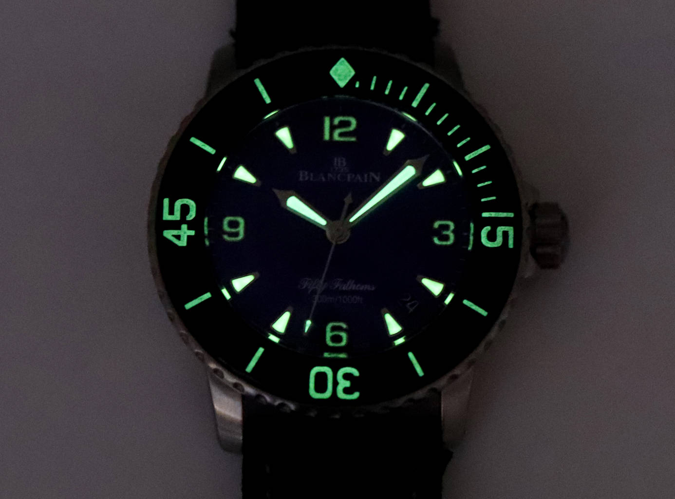 The indexes, hands and bezel are coated with Swiss imported Super-LumiNova.